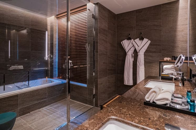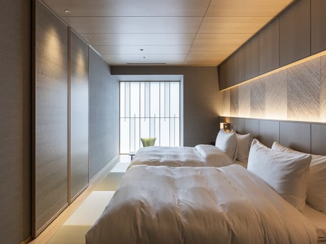 | アメニティ | 空冷蔵庫、セーフティボックス ウォッシュレット、電気ケトル ≪POLA≫ヘアシャンプー ヘアトリートメント、ボディソープ ハンドソープ、スキンケア4点セット デンタルキット、ブラシ、絆創膏 シェービングキット、ドライヤー スリープウェア、タオル、スリッパ ヘアゴム、コットン、綿棒 ミネラルウォーター、ズボンプレッサー 電気スタンド、ユニバーサルアダプター 携帯電話充電器、そばがら枕、テンピュール枕 毛布、ソーイングセット、ワインオープナー |
