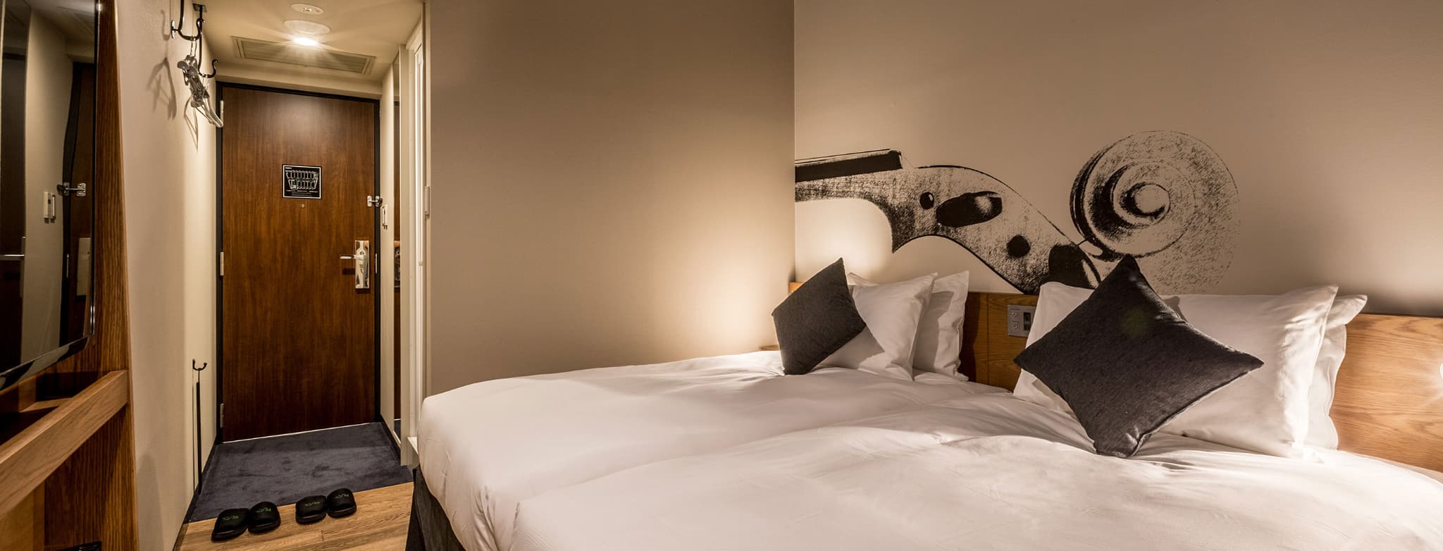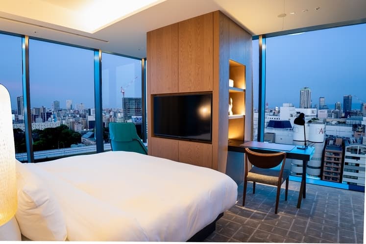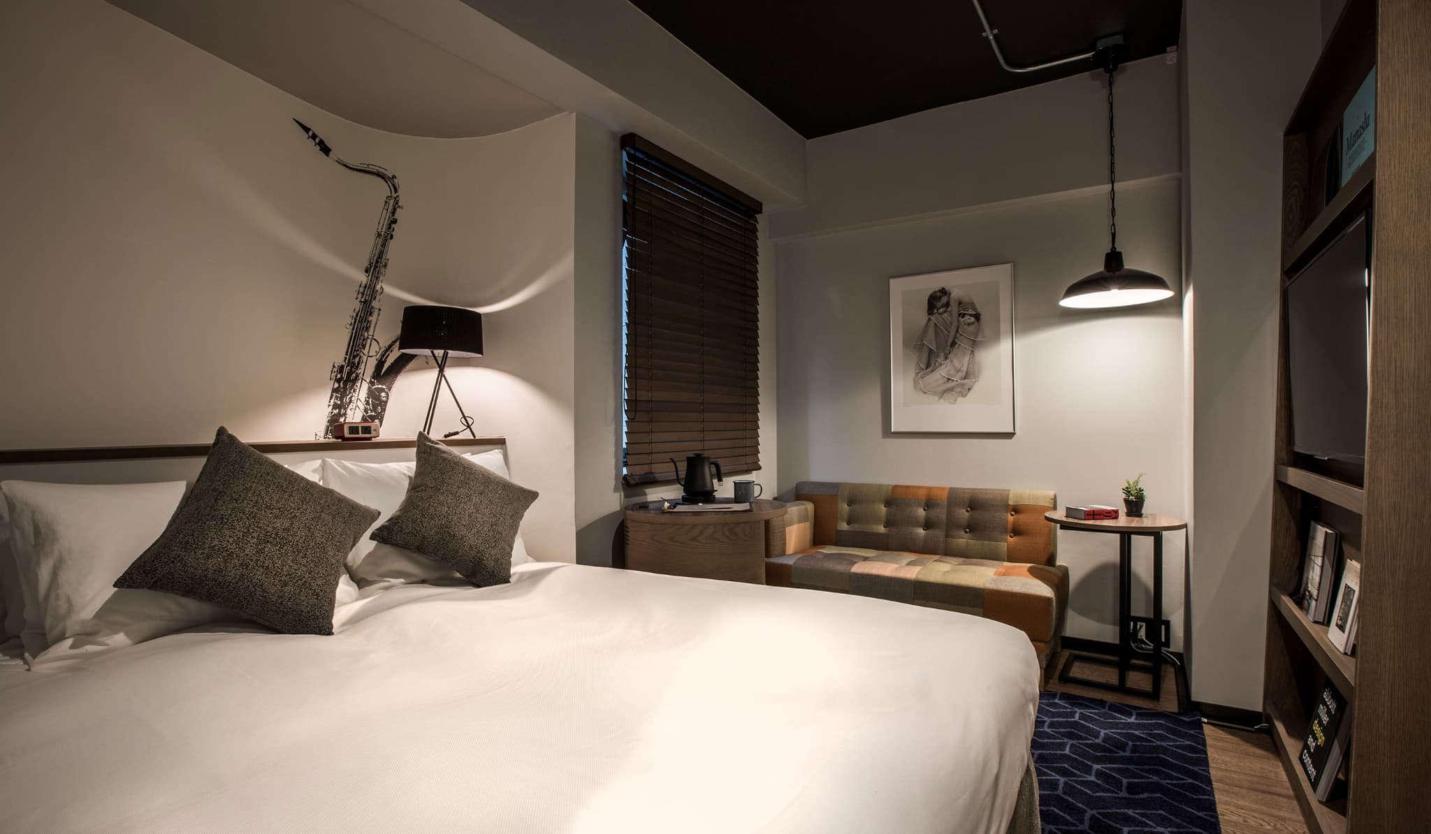 名古屋駅から歩いてすぐ。扉をくぐれば、JAZZが静かに鳴るロビーが迎えてくれる。“スーツにスニーカー”みたいな、ちょっと肩の力が抜けた都会のアメリカンスタイル。素材や家具、小さなオブジェのひとつまでこだわった空間は、大人たちがふと立ち寄る秘密のラウンジのよう。客室は靴を脱いでくつろぐシューズオフスタイル。深い眠りへ誘うオリジナルベッドと、ほのかに香るウェルカムアロマが旅の緊張をそっと解いてくれる。朝は“一蘭”のラーメンで始まるという、ちょっと意外で嬉しいルーティン。
