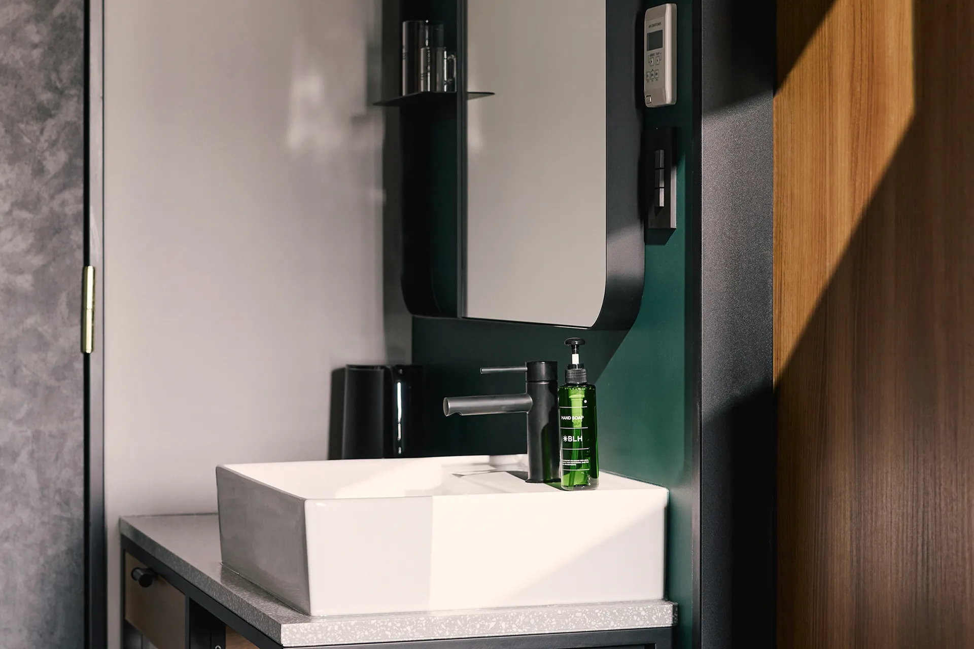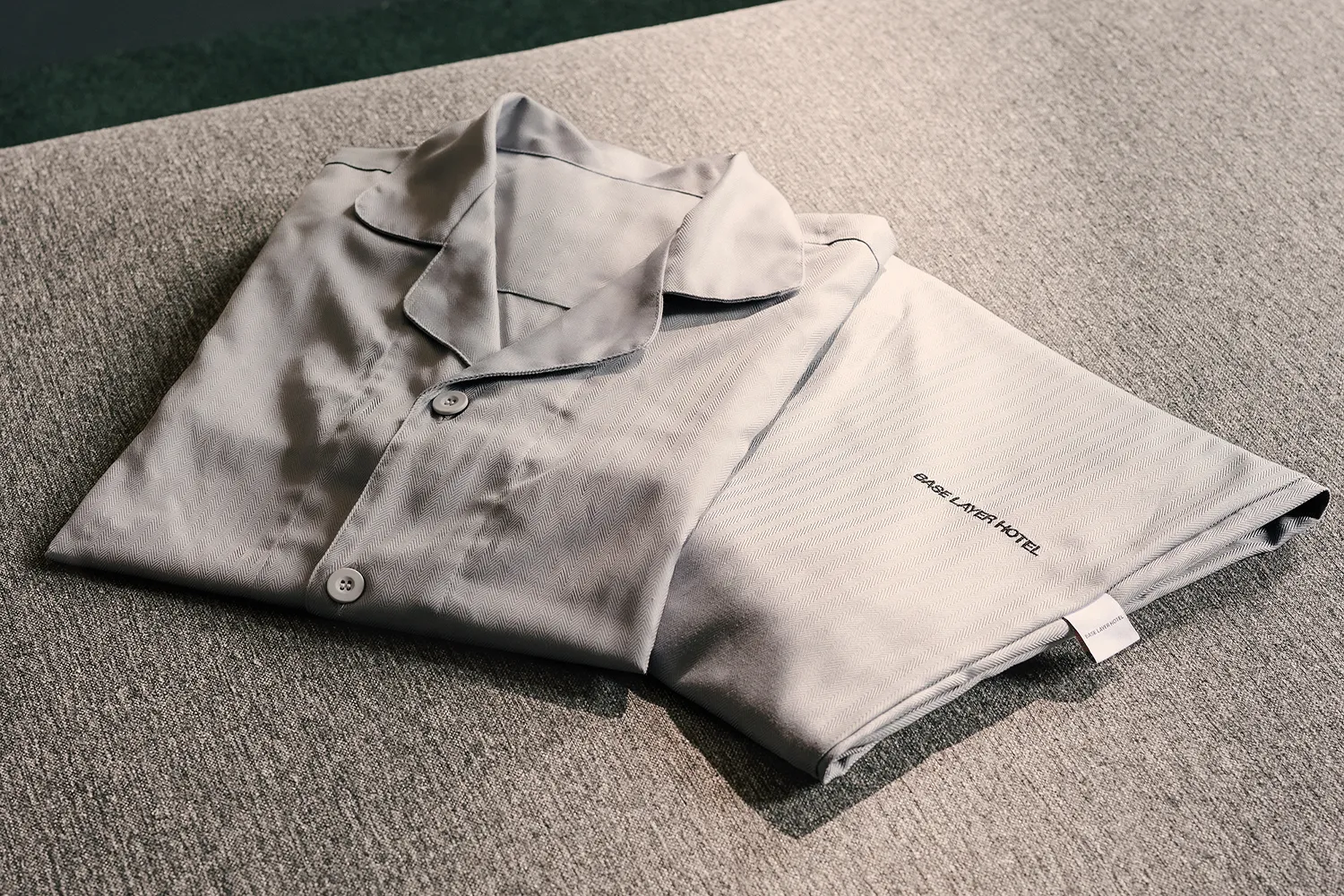 街の熱気と静けさ、そのちょうど真ん中にあるようなホテル、「BASE LAYER HOTEL NAGOYA NISHIKI」。街遊びのベースとなる“レイヤー”をテーマにした新しい感覚のステイ。客室にはサウナ付きのタイプもあり、落ち着いたトーンの空間に身を委ねながら、心身ともにリセット。アメニティは、サステナブルな製品づくりで知られる〈athletia〉を採用し、タオルは〈FRUIT OF THE LOOM〉を世界で初めてホテル展開。こだわり抜いた“ベーシック”が、旅をより上質にする。街と、感性と、自分をつなぐための拠点。