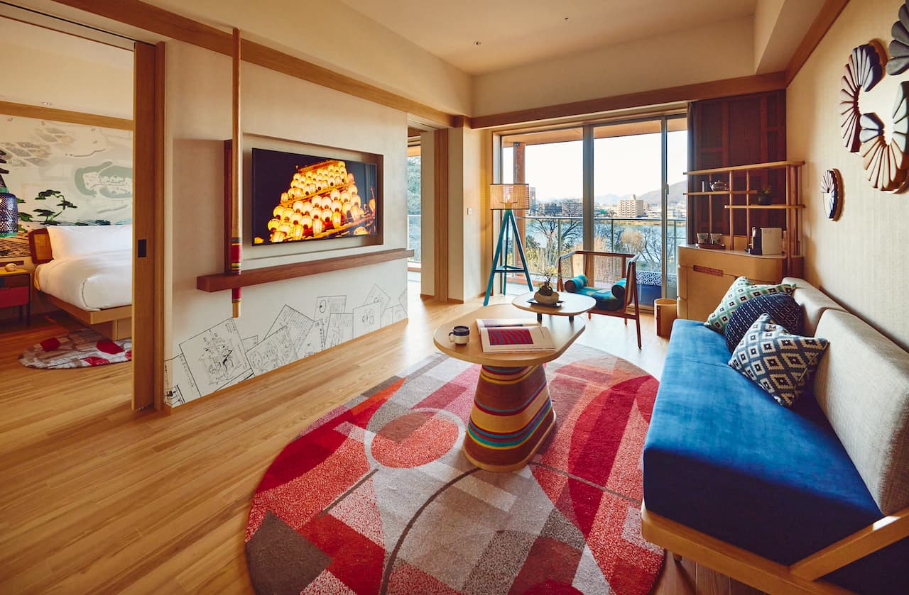 | アメニティ | テレビ、電話、湯沸かしポット お茶セット、冷蔵庫、ミニバー ドライヤー、ズボンプレッサー(貸出) アイロン、加湿器(貸出)、ヘルスメーター 変圧器(貸出)、洗浄機付トイレ、石鹸(固形) ボディーソープ、シャンプー、コンディショナー 入浴剤、浴衣、スリッパ、豪華なリネン エスプレッソマシーン + ティー Smart TV、ミニバー、室内金庫 犬山にインスパイアされたインテリア・食器 ボーズBluetooth スピーカー |