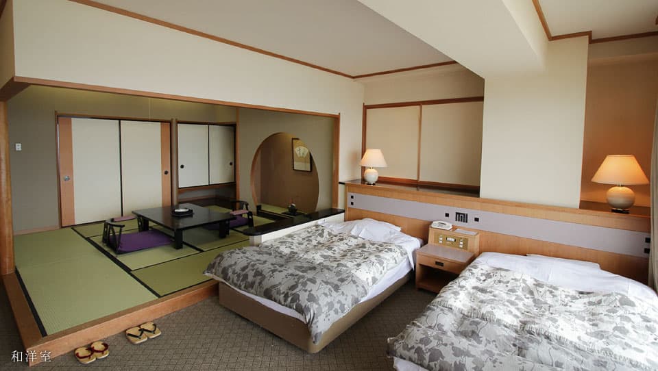 | アメニティ | テレビ 電話 湯沸かしポット お茶セット 冷蔵庫 ミニバー ドライヤー ズボンプレッサー(貸出) アイロン 加湿器(貸出) ヘルスメーター 変圧器(貸出) 洗浄機付トイレ 石鹸(固形) ボディーソープ シャンプー コンディショナー 入浴剤 ハミガキセット カミソリ シャワーキャップ ブラシ タオル バスタオル バスローブ スリッパ パジャマ 金庫 |
