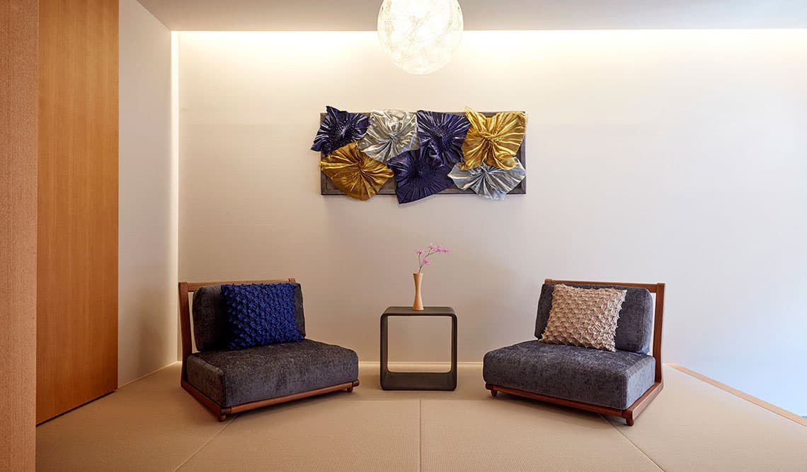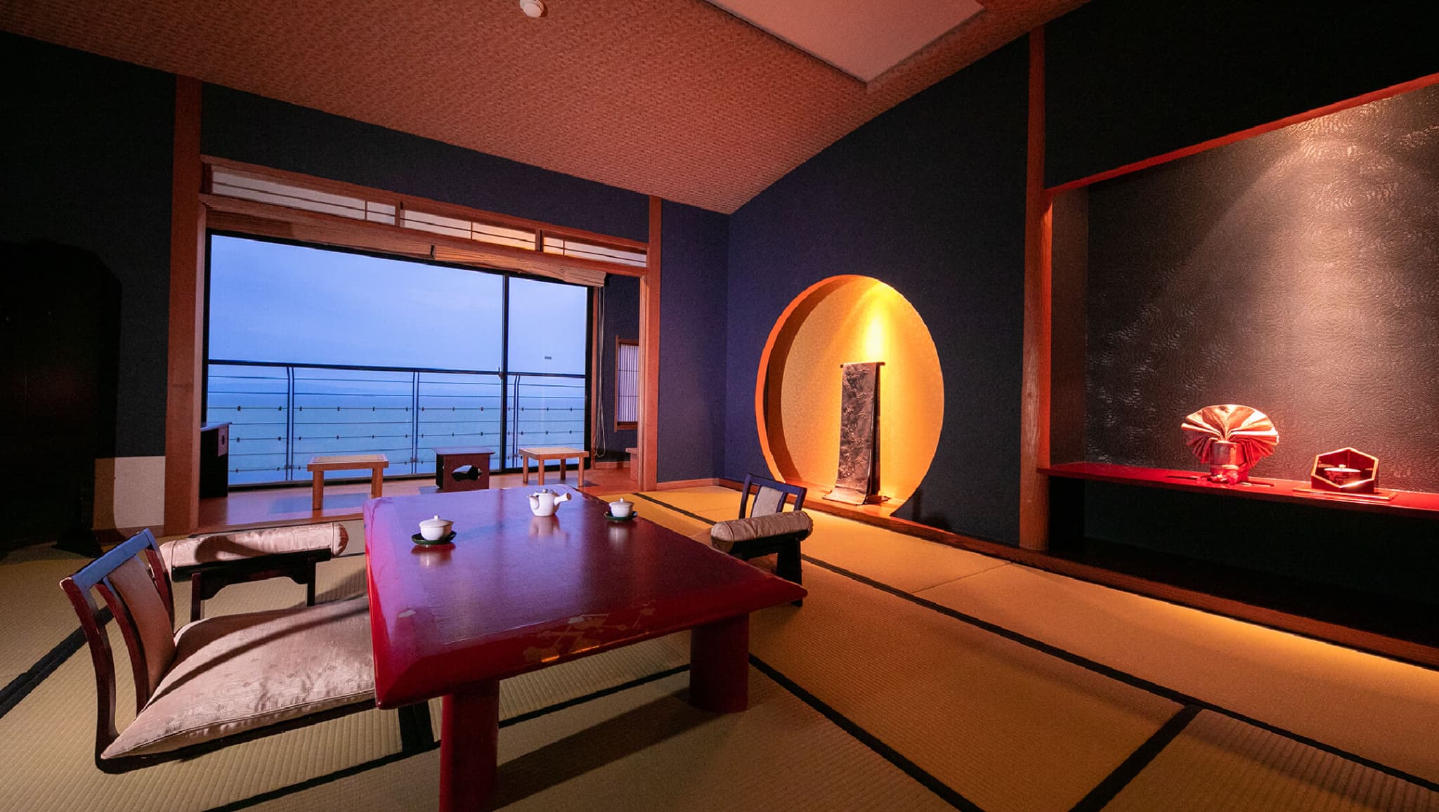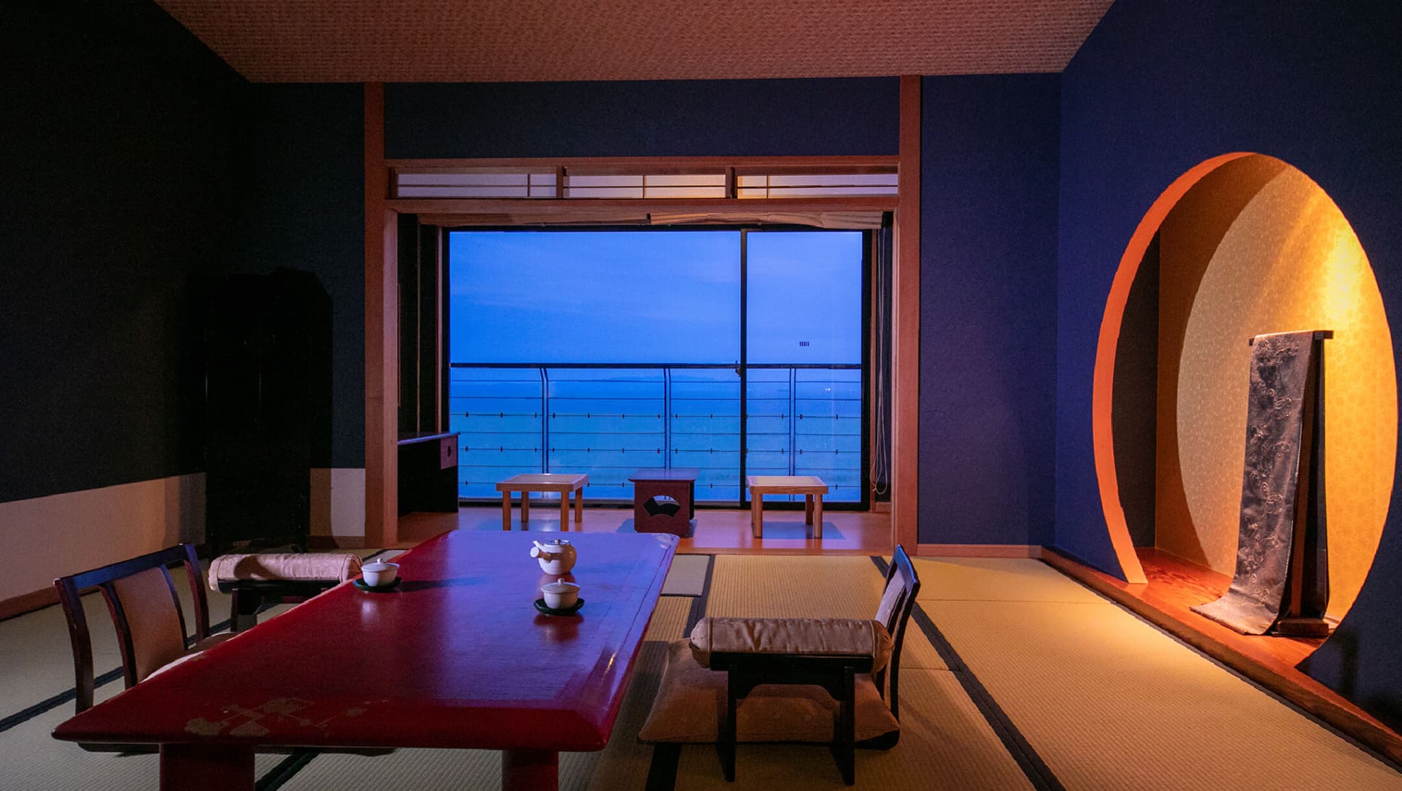 南知多温泉郷・源氏は、平安の雅がふっと立ちのぼるような、“香り”をめぐる体験ができる宿。館内には日本古来の芳香が淡く漂い、源氏物語の世界観をそっとまとった空間が続く。耳を澄ませば、穏やかな波の音、遠くで揺れる漁火、朝焼けを映す海。そのすべてが、時間の流れを静かに巻き戻し、心の速度までゆるめていく。客室は全室オーシャンビュで露天風呂付きの部屋や、機能美を備えた和洋室まで揃っている。豪華絢爛な打掛をまとって記念撮影できる無料の体験もあり、旅の余白に小さな非日常が差し込まれる。とりわけ印象的なのは、女流造作家・岡部泉が手がけたデザイナーズルーム。竹、布、漆といった本物の素材が立体的に平安の美を描き、まるで物語の奥へ迷い込んだかのようだ。さらに、リファのファインバブルシャワーやケアアイテムまで揃い、香り・海・美が静かに交差する贅沢な一夜が待っている。