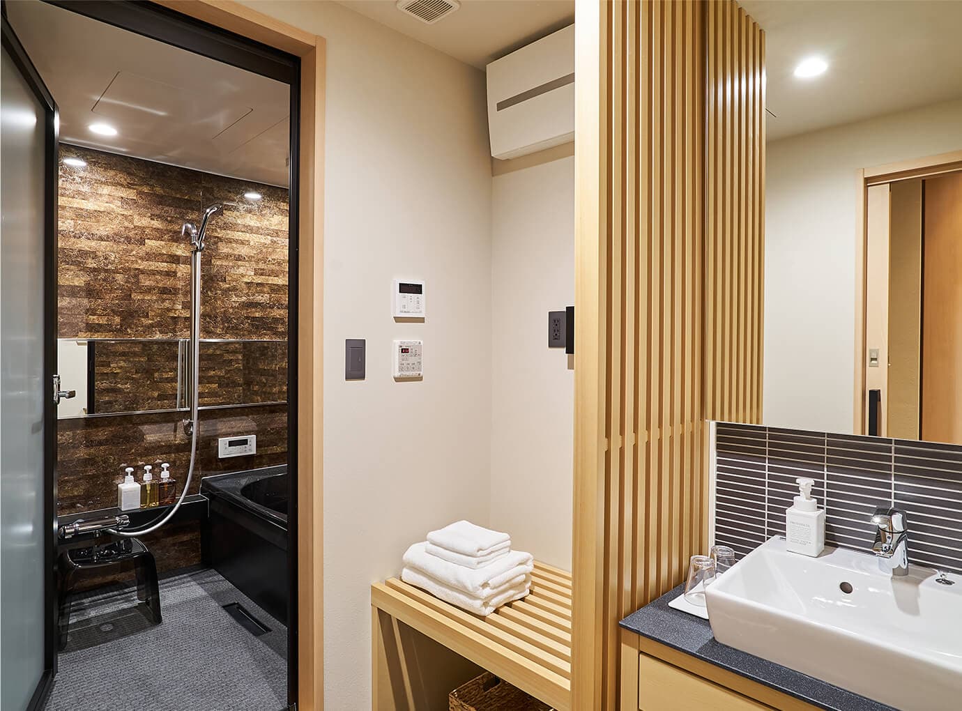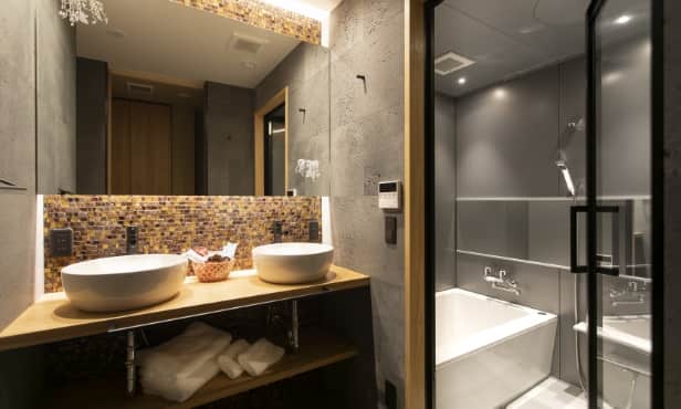 | アメニティ | 館内着、タオル、ミニバー、 プロジェクター、延長コード 充電器、シャンプー トリートメント、ボディソープ ハンドソープ、ボディミルク 芳香蒸溜水、ルームウェア バスタオル、フェイスタオル ハンドタオル、ドライヤー 歯ブラシ、コットンセット、剃刀 ヘアゴム、クレンジング、化粧水 乳液、洗顔、お茶2種、ポット ワイングラス、ロックグラス 茶器、ワインオープナー |