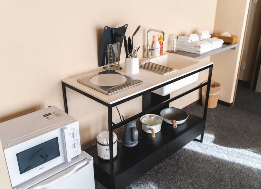 工芸とアートの街、金沢でその空気感をぎゅっと詰め込んだ小さな拠点が「凜庵」。舞台は、約300年の時を刻む金澤表参道。町家や老舗、気の利いたカフェが並ぶ通りに、全8室だけの静かな宿が佇む。客室はすべてキッチン付きのコンドミニアムで、客室で料理を楽しめる仕様になっている。地元の工芸作家やアーティストと組んだ空間は、飾るためではなく、暮らすためのアートとして配置されている。近江町市場も、ひがし茶屋街も徒歩圏内で、観光するというより、金沢の日常に溶け込んだ滞在が堪能できる。