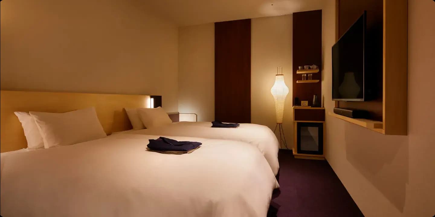 金沢の台所・近江町市場のすぐ裏。商人のざわめきが往来した袋町に、そっと佇むのが SOKI KANAZAWA。名前の通り “素の器” でありたい、そんな静かなコンセプトをもった宿だ。和紙の壁、畳の匂い、暖簾の揺れ。日本の風情を感じるミニマルな空気が、旅の疲れをゆっくりと癒してくれる。加賀温泉郷の“かけ湯”文化を取り入れた大浴場では、季節ごとに移り変わる「季節湯」を展開している。さらに、アロマ蒸留所〈EarthRing〉と組んだハーバルルームでは、サシェやバスソルトを自分で作って持ち帰れるという粋な仕掛けも。街の鼓動と静けさが入り混じる贅沢な空間で、ありのままの自分を見つめ直す貴重な体験ができる。