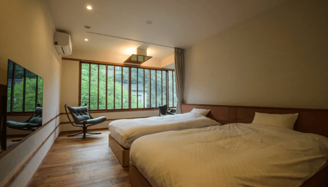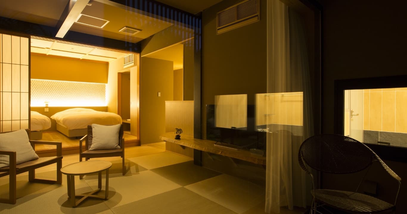 | アメニティ | 液晶テレビ、冷蔵庫 電気ケトル、洗浄機付トイレ シャンプー、コンディショナー ボディーソープ、ハンドソープ ヘアドライヤー、館内着、館内履き フェイスタオル、バスタオル ボディータオル、竹歯ブラシ、金庫 歯磨き粉ペーパー、衣類用消臭剤 |