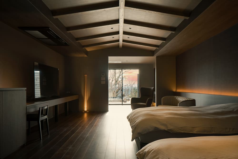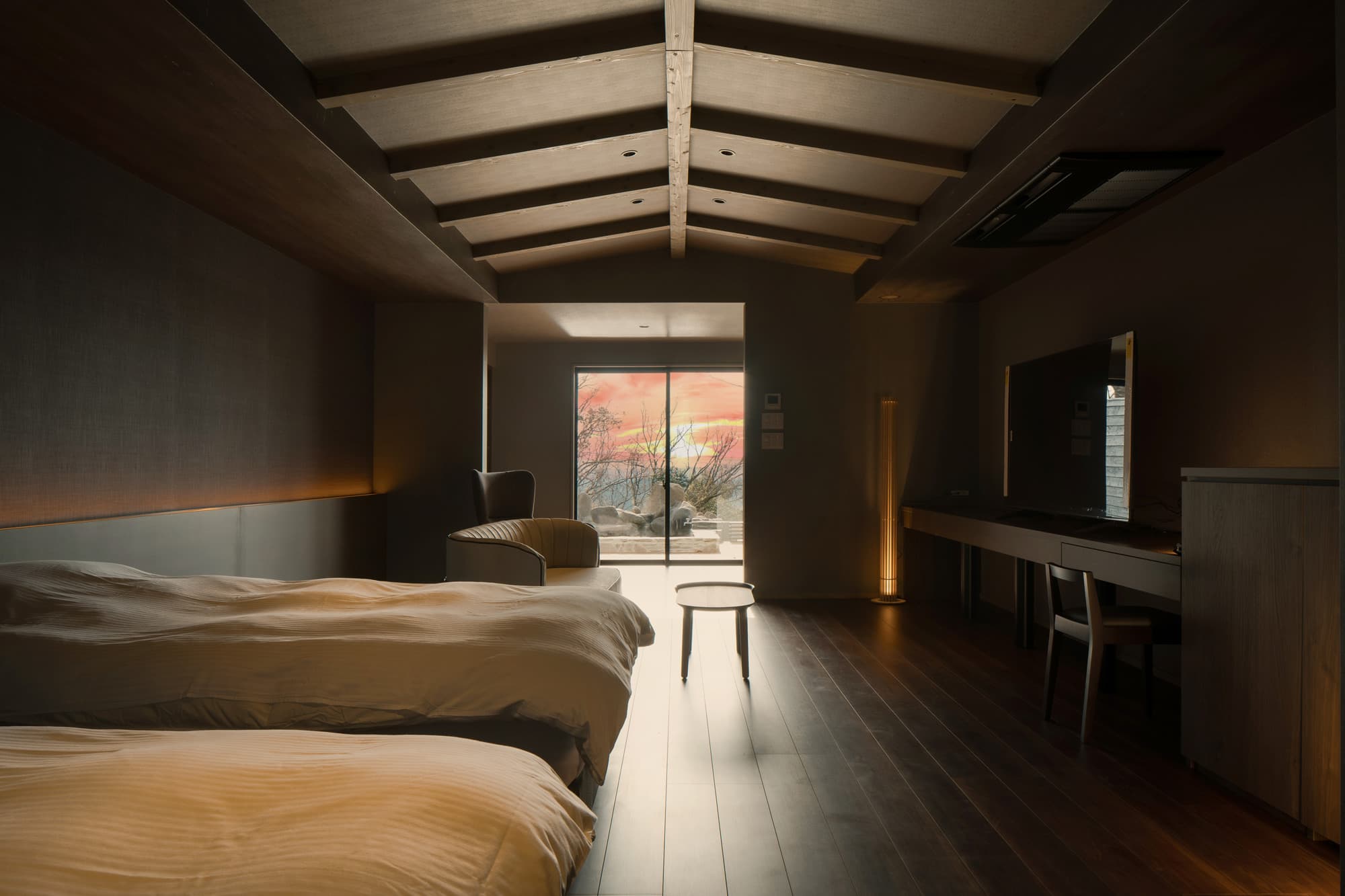 霧島の山肌に寄り添うようにそびえ立つ、わずか8室の隠れ家「霧の里」。雲が流れ、陽が差し、夜が深まるたびに表情を変える霧島らしい空気の中で、静かに自分を取り戻すための宿だ。館内を満たすのは、地下200メートルから湧き上がる“飲める天然水”。サウナも、水風呂も、露天風呂も、その清らかさに貫かれている。プロ仕様の“三ツ星サウナ”でしっかり熱を入れ、名水のアイスまで浮かぶ水風呂でクールダウンする気持ちよさは格別。朝には雲海がテラスを包み、夕暮れには淡い霧が漂う。和モダンの落ち着いた客室で、ただ自然と呼吸を合わせるような時間が流れていく。