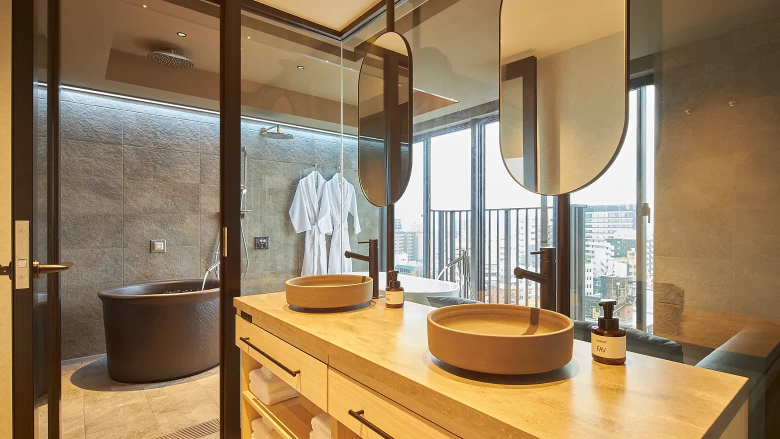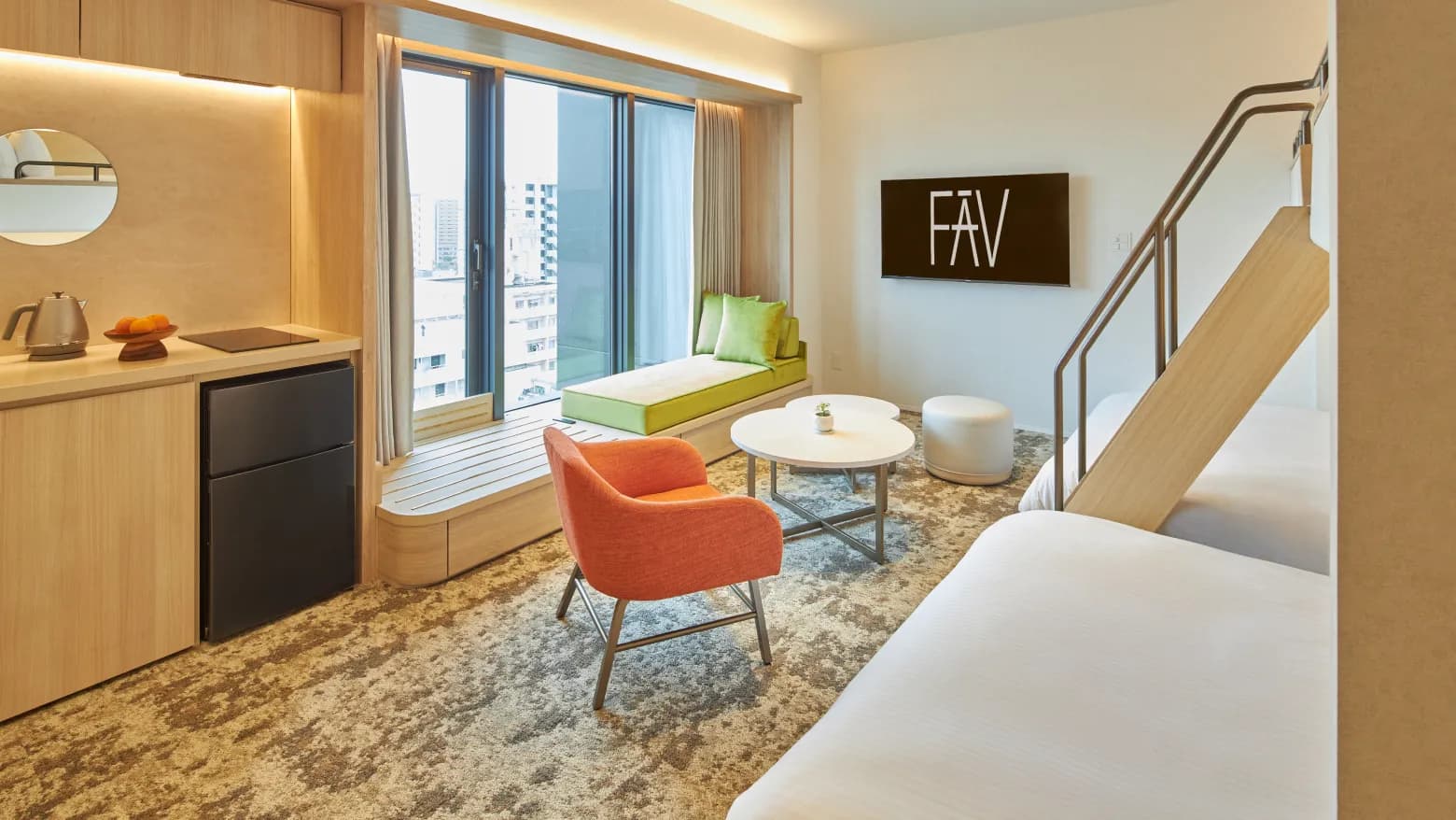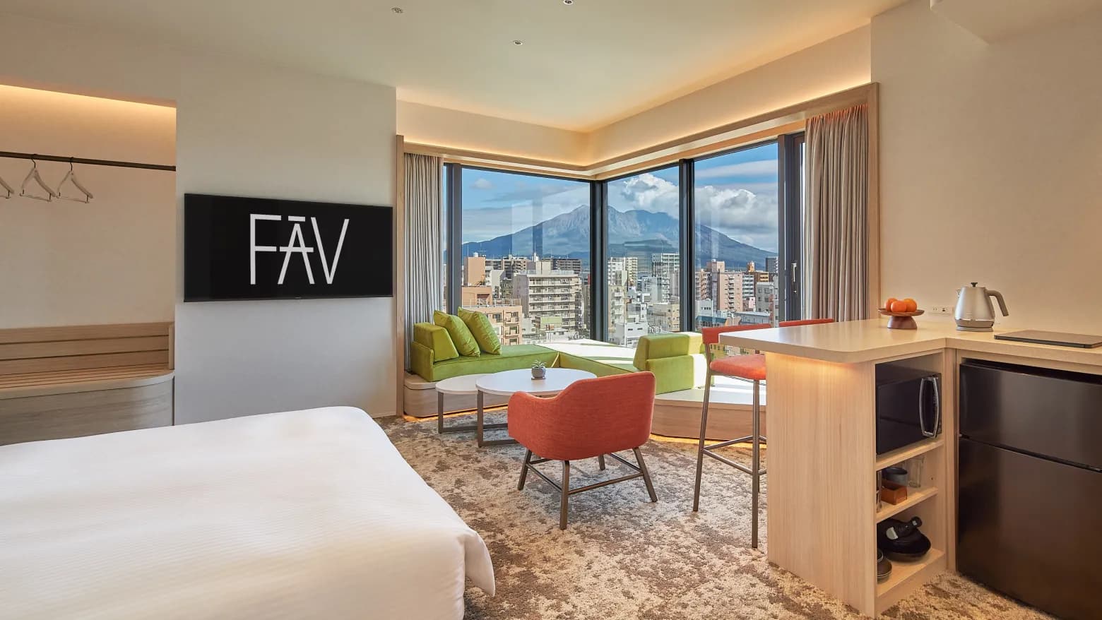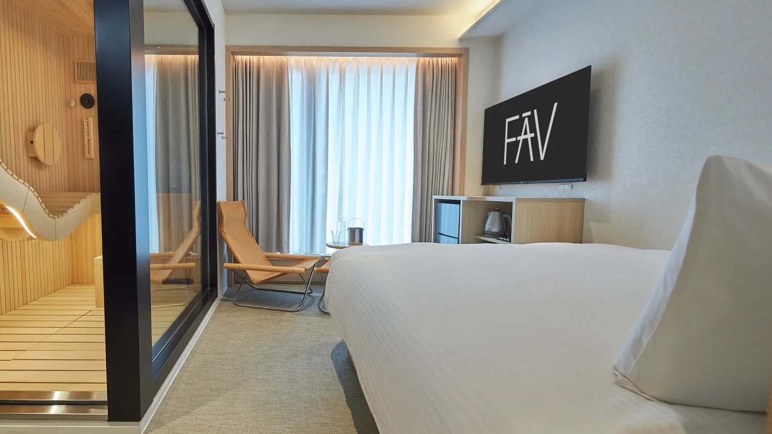 FAV LUX 鹿児島天文館は、街と旅人の“繋がり”を生み出す拠点となるホテル。広めのベッドやバスルームは、大人数でゴロゴロしても余白が残るサイズ感。しかも桜島ビューで1万円以下という懐の深さに思わずうなる。目玉は、フィンランド式×モリス式を掛け合わせた貴重な“ハイブリッドサウナ”。90cmの深い水風呂、風が抜ける外気浴テラスまで揃っていて、ととのう未来が約束されている。屋上のルーフトップバー&ビストロでは、桜島を眺めながら朝から夜まで好きな使い方ができる。「Local Mixture Club」という名の通り、旅人も地元の人も自然と混ざる、鹿児島のカルチャーを刺激するような場所だ。