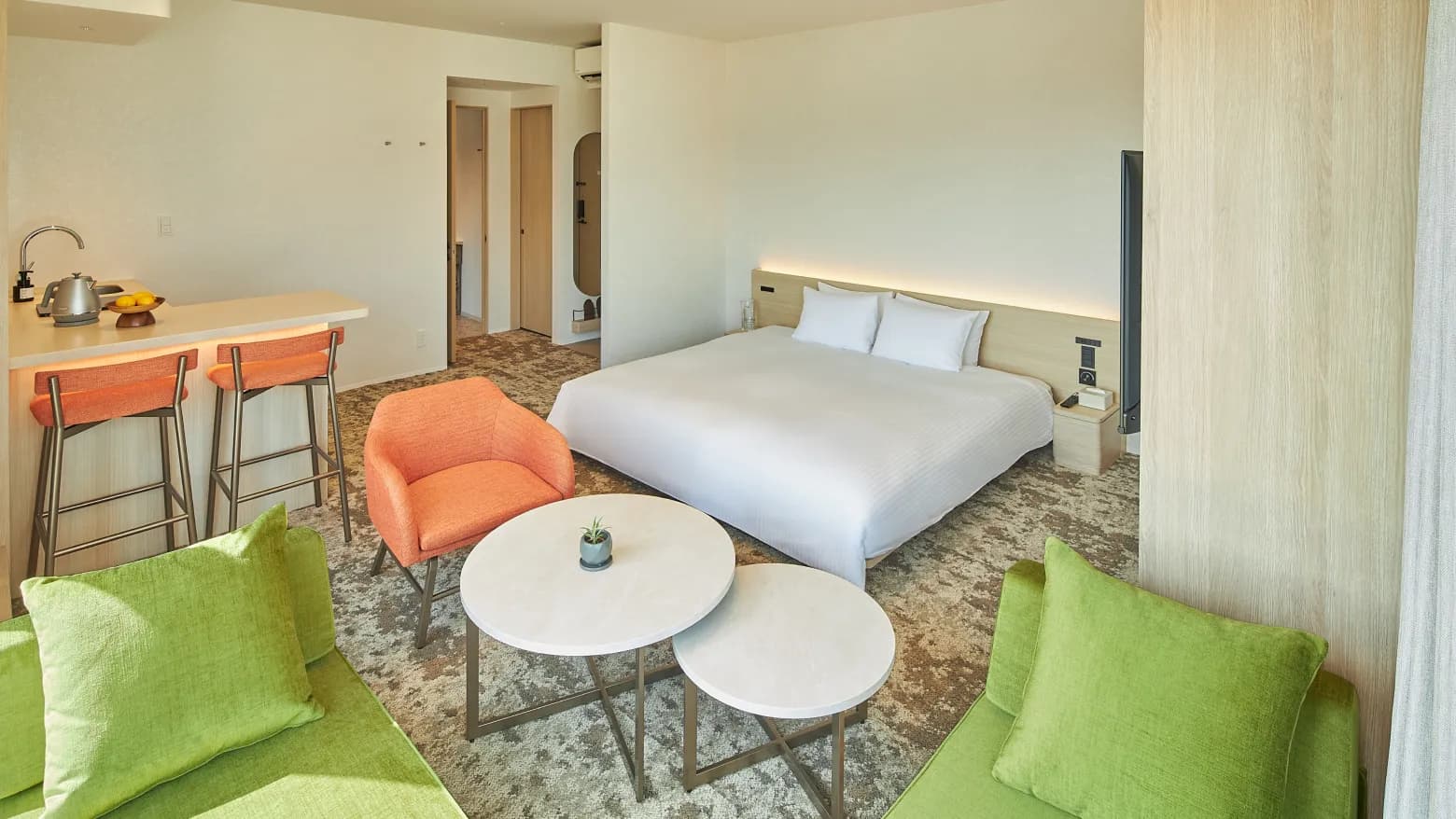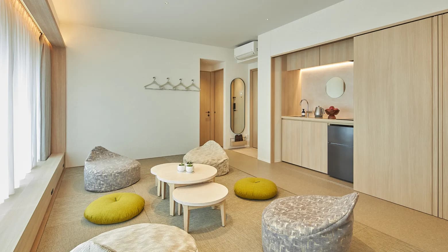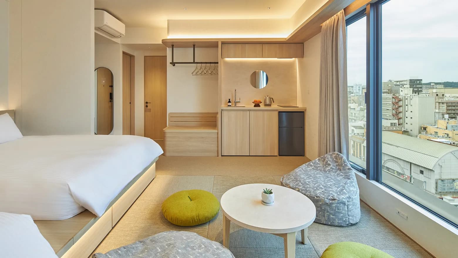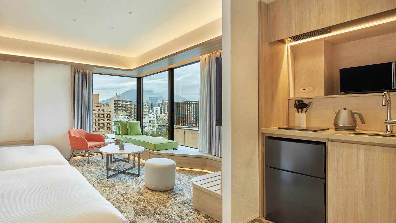 ROI SPACEは、鹿児島中央駅から歩いて5分。旅先なのに“暮らす”感覚がふっと芽生える、ナチュラルモダンな隠れ家。大きな窓から差し込む朝の光、スリーピーとうふのマットレスに包まれた上質な眠り。そんな些細な心地よさが、旅のテンションを底上げしてくれる。部屋にはキッチンと美しい食器が揃い、丁寧な暮らしを再発見するにはうってつけ。淹れたての香り高いコーヒーが、ここでの滞在を“思い出の一杯”に仕立ててくれることだろう。鹿児島での時間を、軽やかにアップデートしてみては。