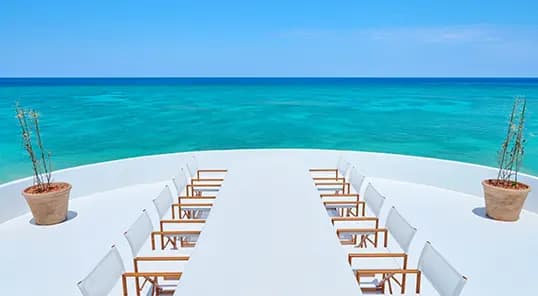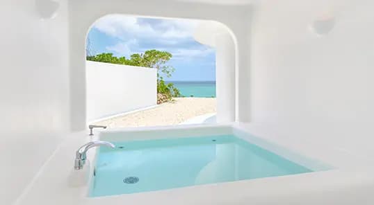 エメラルドの海に囲まれた与論島。そのヨロンブルーのまぶしさを、まるごと日常に持ち込んだようなリゾートがブリシアリゾートヨロン。2023年のリニューアルで、スイートヴィラからレストラン、エントランスまでまるっと生まれ変わり、離島での滞在の質が一段上がった。白砂に寄り添うビーチサイドは、どこかミコノスの風が吹く青と白のコントラストが鮮やかに映える。目覚めれば窓いっぱいに広がる海、そしてプライベートプールやサウナが揃う贅沢な設備がお出迎え。潮風と暖かな日差しがゆっくりと混ざり合うこの島で、日々の喧騒から離れたリゾートステイを。