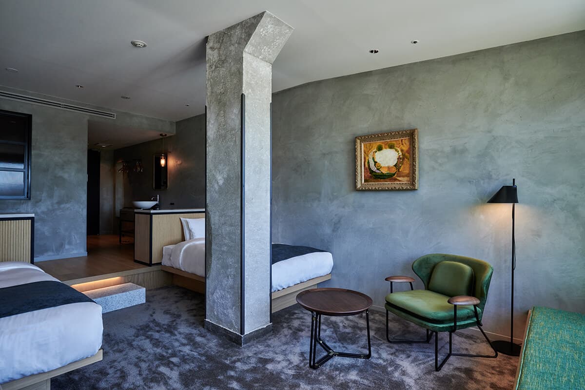 hotel androoms は、いつもの旅にちょっとした“&”をプラスしてくれる場所。モダンな大浴場には静かに湯が揺れ、露天風呂の向こうに漂う湯気が、一日の喧騒をそっと拭い去っていく。朝にはカフェ仕立てのブレックファストを客室までデリバリー。まだ柔らかい光の中、ふかふかのベッドに腰を沈めて味わう朝食は、ちょっとしたご褒美だ。洗練された室内は、まるで韓国のホカンスのように“非日常と日常のちょうど真ん中”。カフェ、スパ、デリバリー。小さな“&”が積み重なって、滞在そのものが豊かに変わっていく。