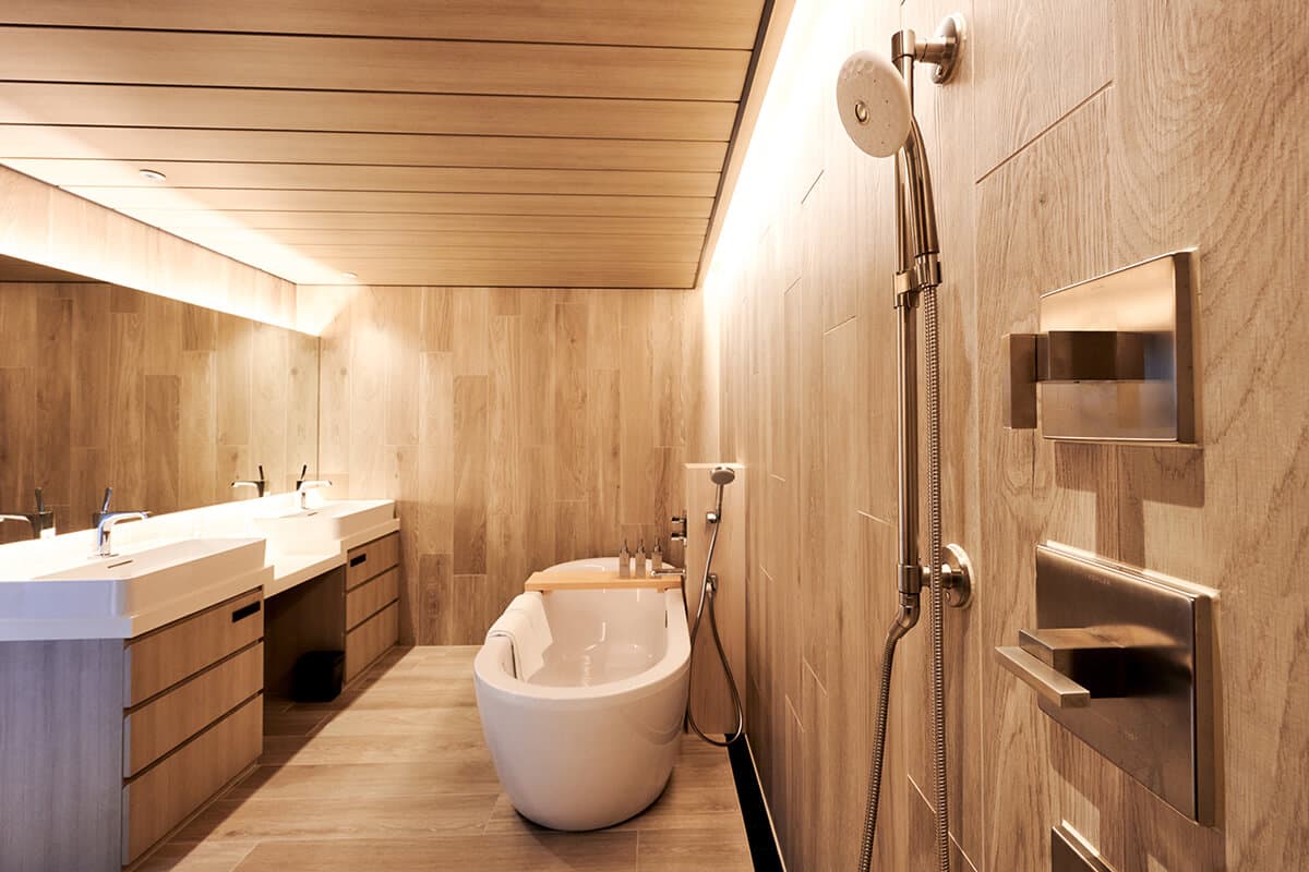 | アメニティ | テレビ、Wi-Fi、電話 冷蔵庫、金庫、コーヒーメーカー 電気ケトル、アイスペール グラス、マグカップ、マドラー ティーパック、ミネラルウォーター ドライヤー、カールアイロン(32mm) アイロン、加湿空気清浄機、体重計 マルチ携帯電話充電器、除菌スプレー 洋服ブラシ、タオル類、ナイトウェア ハブラシ、綿棒、レザー、ヘアブラシ ヘアゴム、コットン、スキンケアセット フェイス&ハンドソープ、シャンプー コンディショナー、ボディソープ 入浴剤、ボディタオル、シャワーキャプ ランドリーバッグ、シューシャインペーパー 使い捨てスリッパ |